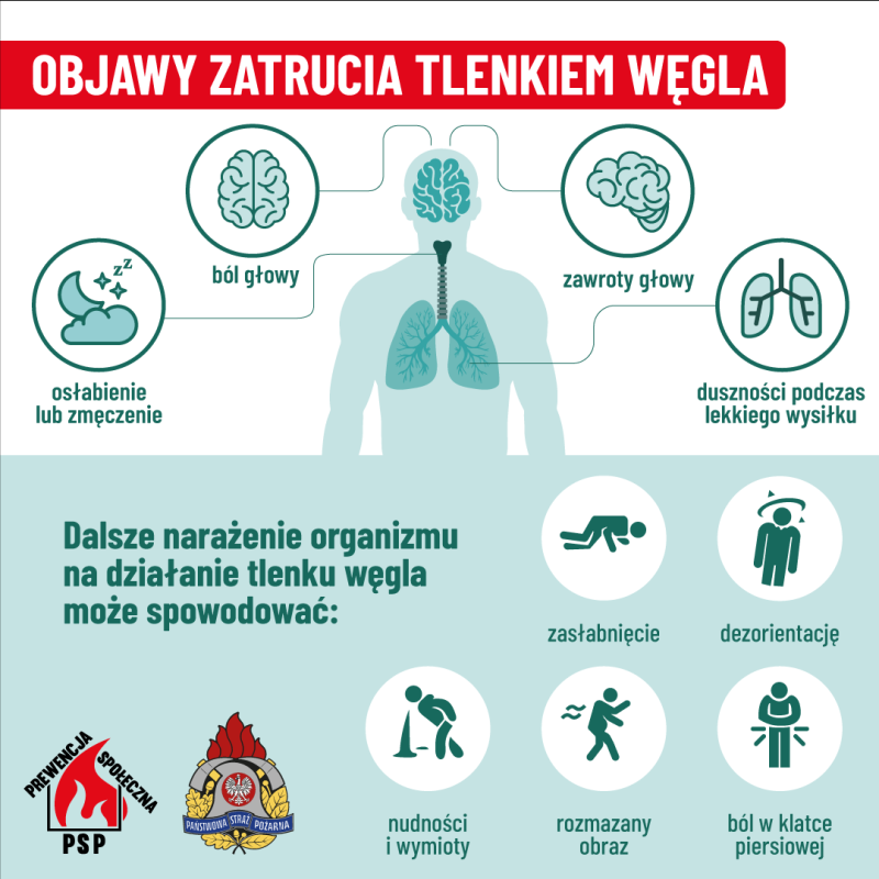 W okresie grzewczym wzrasta ryzyko powstania pożarów i zatruć tlenkiem węgla w budynkach mieszkalnych. Źródłem emisji tlenku węgla są urządzenia grzewcze opalane drewnem, węglem, gazem, olejem opałowym.