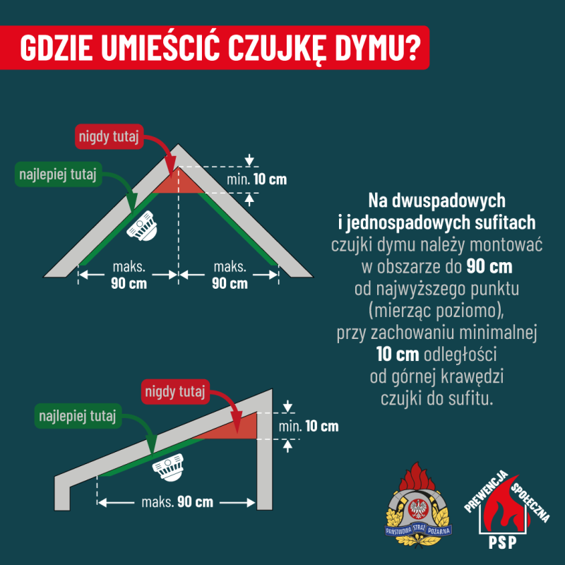 Państwowa Straż Pożarna rekomenduje instalowanie czujek dymu i tlenku węgla.